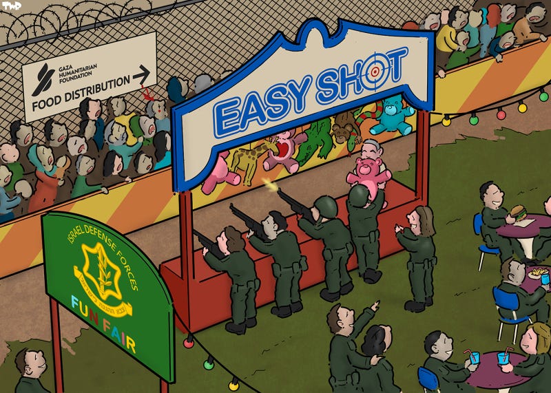 IDF fun fairPolitical cartoonJul 02, 2025ShareShooting at people standing in line for food.PreviousNext
