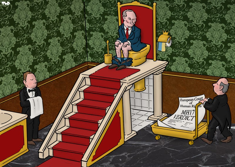 MH17 verdictPolitical cartoonJul 11, 2025ShareThe European Court of Human Rights finds Russia responsible for downing of MH17 and rights abuses in Ukraine. How will Putin react? Our greed knows no bounds. Cartoon for Dutch daily newspaper Trouw.PreviousNext